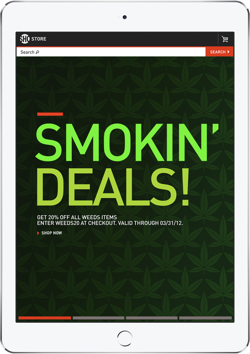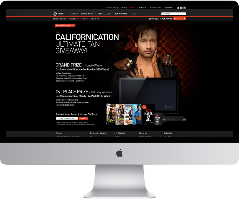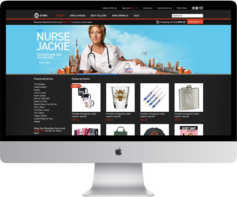 Owned by the CBS Corporation, Showtime is a premium cable television service that features theatrically-released motion pictures, original cable series, made-for-cable movies, and occasional boxing and mixed martial arts matches. I was responsible for initial creative concepts and oversaw all production for both the CBS and Showtime online stores.