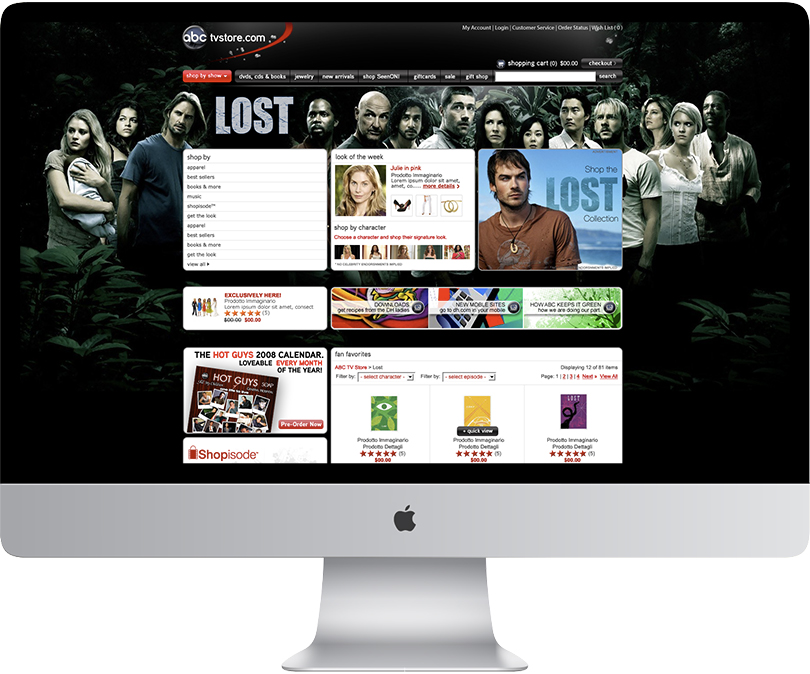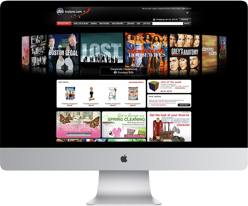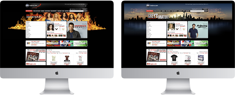 From its first broadcast in 1948, ABC now boasts some of the highest rated series on television including Lost, Desperate Housewives, Grey’s Anatomy, General Hospital and Ugly Betty. My task was to design a complete online retail experience that not only featured show related merchandise, but also showcased high-end retail items worn by the actors and actresses on the shows.