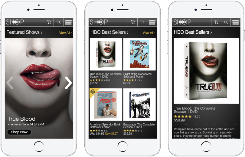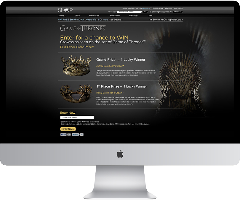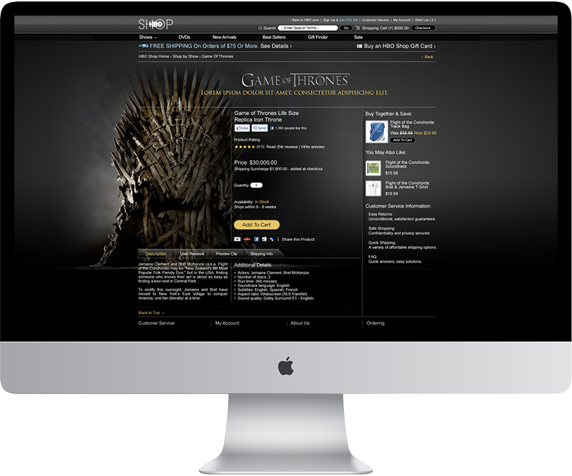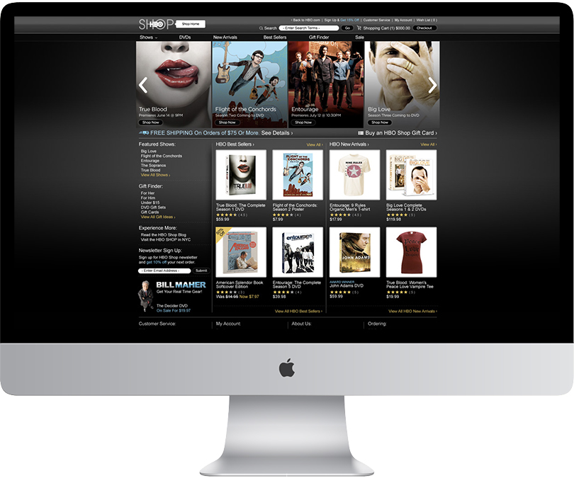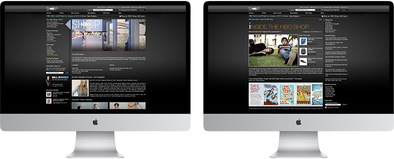 HBO’s programming consists primarily of theatrically released motion pictures, original series, documentaries, boxing matches, and occasional stand-up comedy specials. I was approached to design and implement a high traffic e-commerce website that was consistent with the newly launched HBO.com site. My challenge was to create a seamless experience between the two sites while still placing special emphasis on the independently branded feature films, HBO series and featured merchandise.