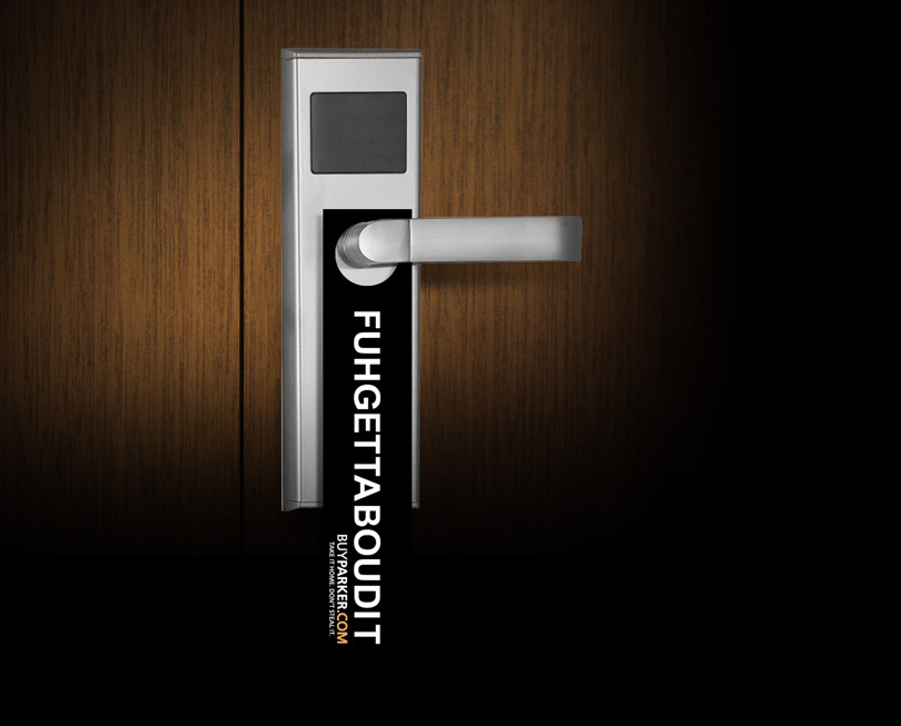 Le Parker Meridien, in its quest to deliver the quintessential New York experience, developed a new way for guests to be left alone, tell others to beat it, scram! The hotel will put another spin on the traditional Do Not Disturb sign with bold, new white-on-black doorknob hangers that read: Fuhgettaboudit!