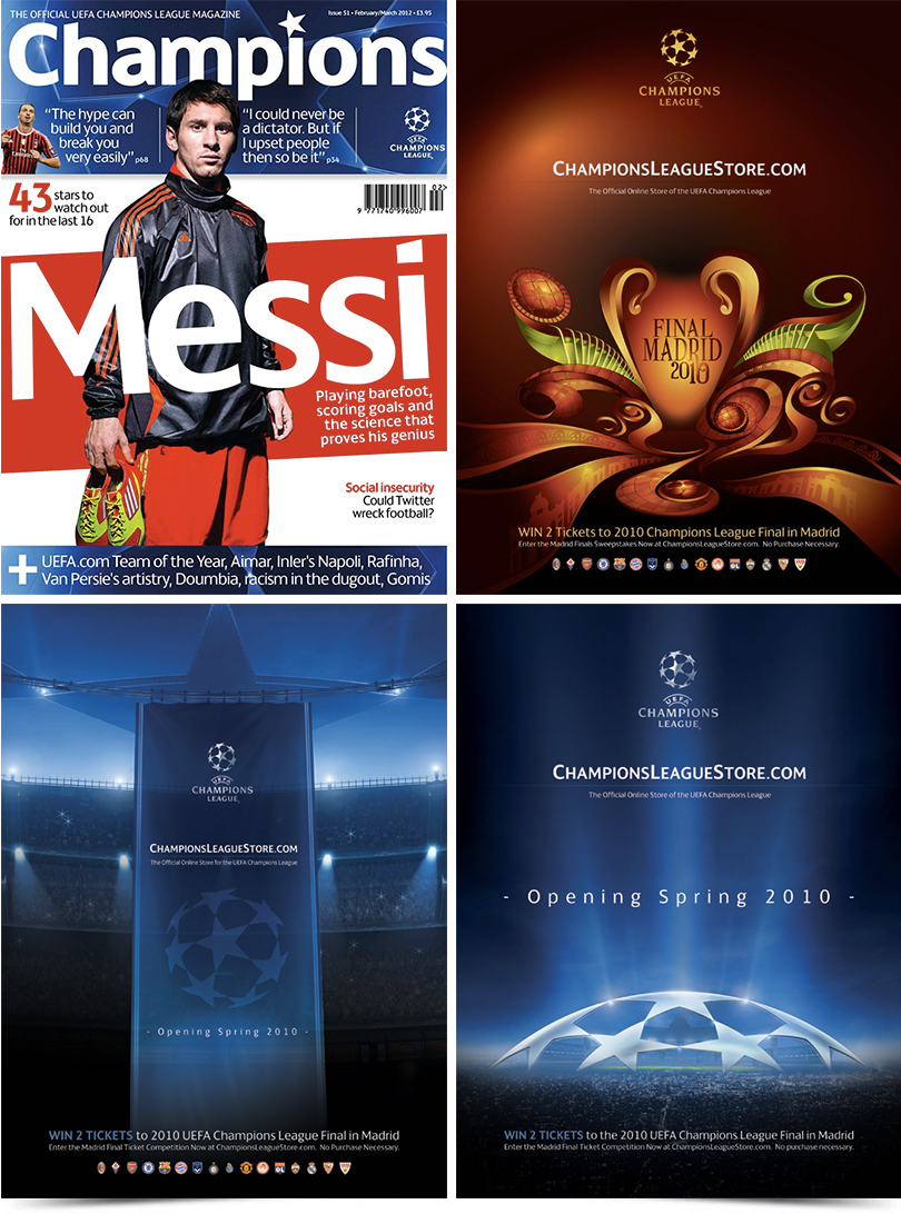 The UEFA Champions League is widely considered to be the most prestigious football club competition in the world. Its final match draws a viewership of over 100 million. These Print ads, which ran consecutively in Champions Magazine, promoted the launch of the official online marketplace for UEFA and European football.